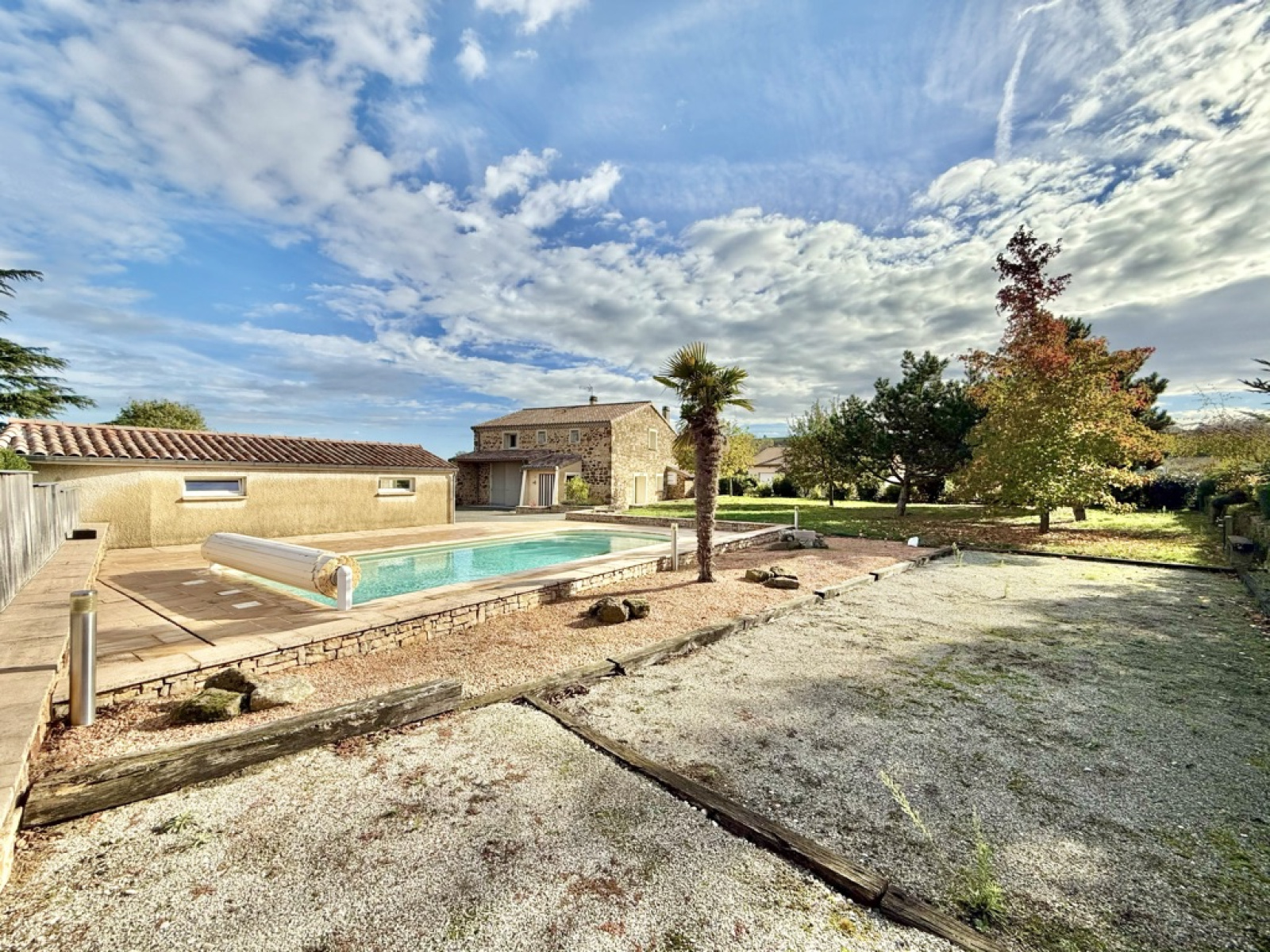 À l’extérieur, vous apprécierez un grand jardin paysagé et arboré, une terrasse spacieuse, ainsi qu'une piscine coque au sel (9x4 mètres). Un terrain de pétanque et un deuxième garage d’environ 15m² viennent parfaire l'ensemble.