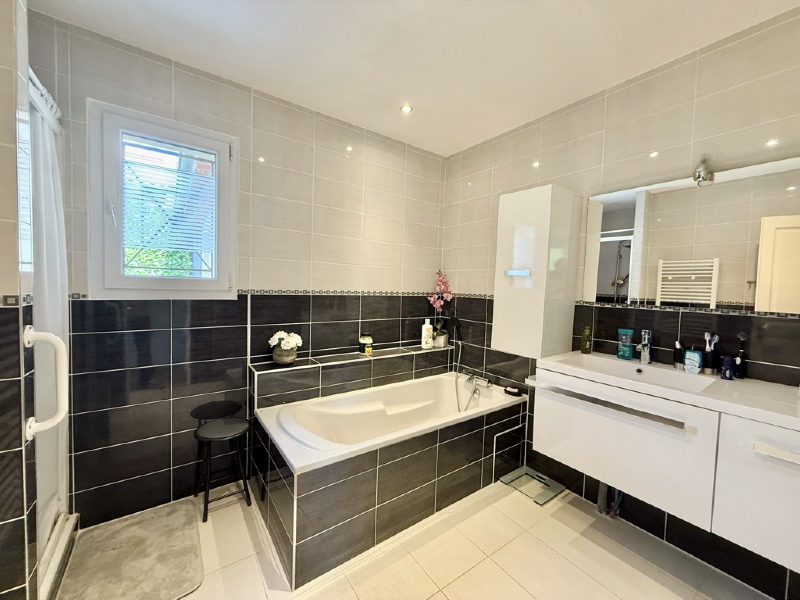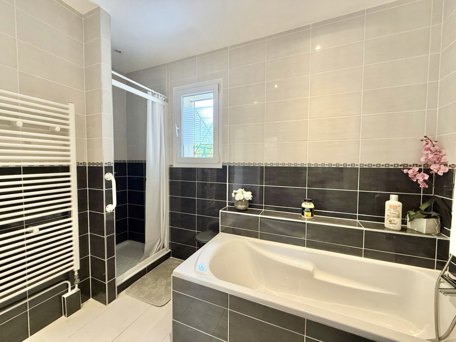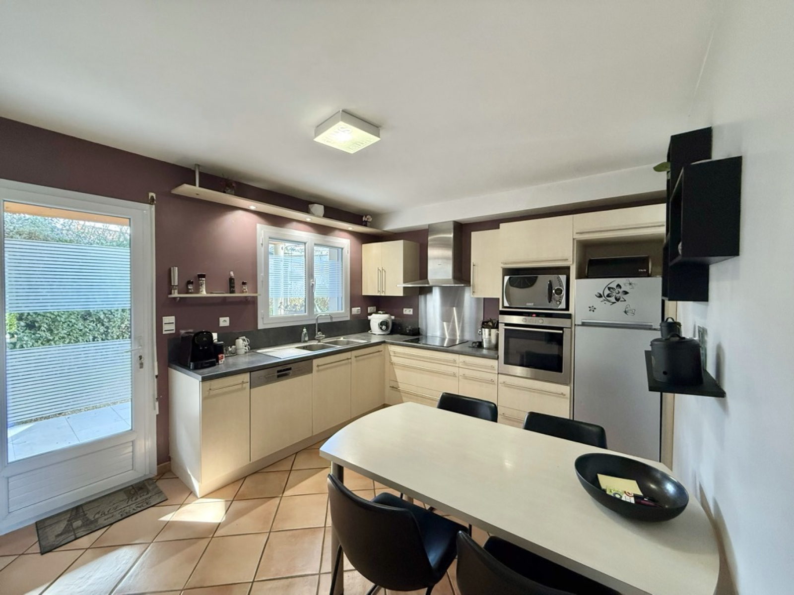 L’entrée s’ouvre sur une belle pièce de vie lumineuse de 41 m² comprenant salon, salle à manger, et une cuisine indépendante, entièrement équipée.