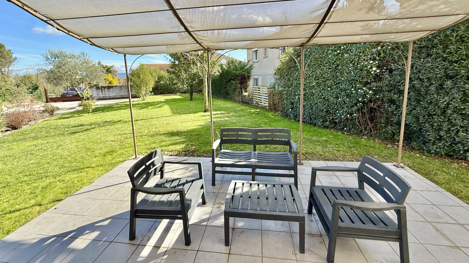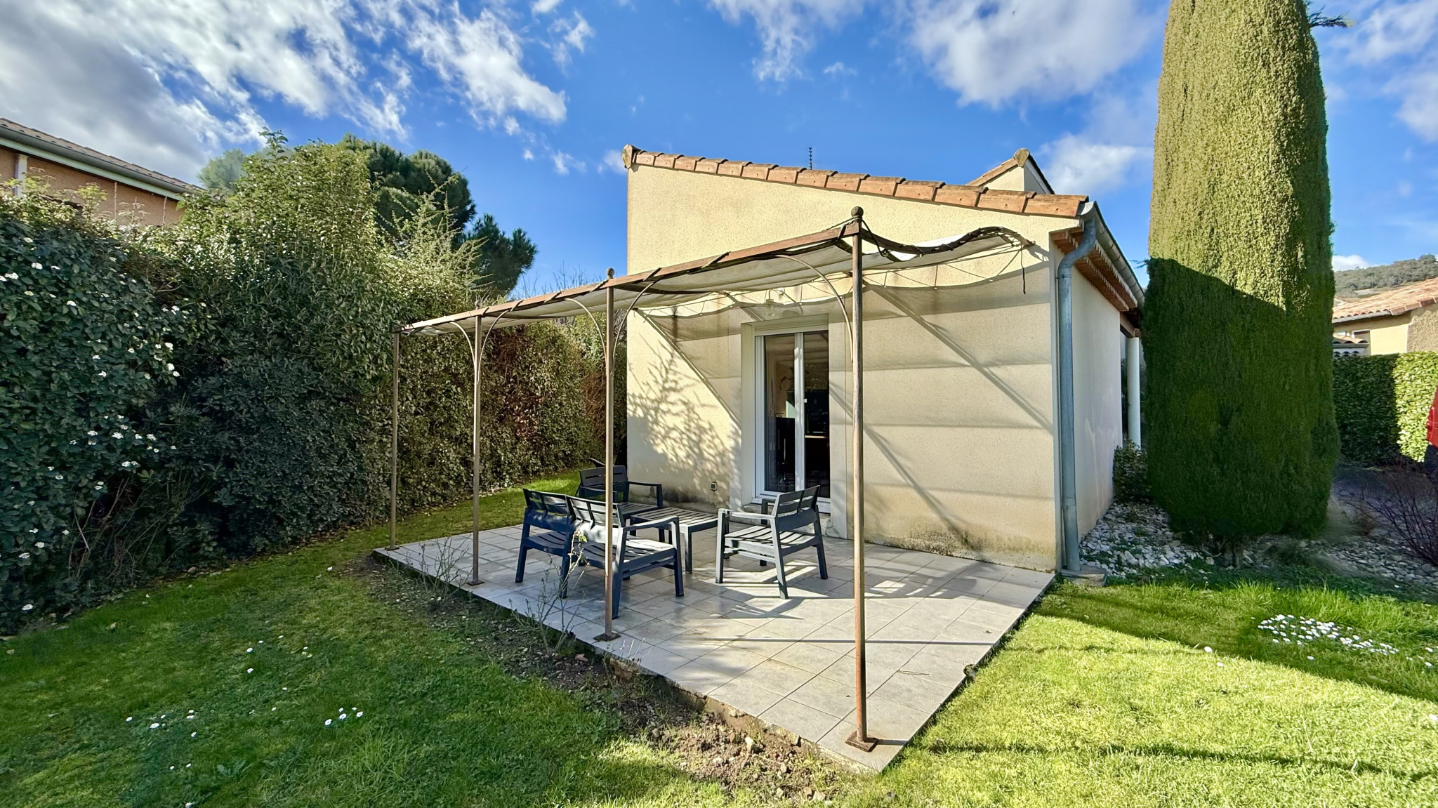 La maison bénéficie d’un double accès, soit par le centre de Cornas, soit par l’arrière via un quartier résidentiel, un atout pratique au quotidien.