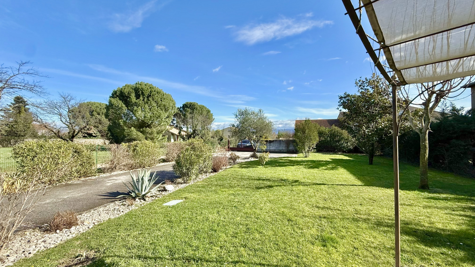 Dès l’arrivée, vous bénéficiez d’une grande allée permettant de stationner plusieurs véhicules ainsi qu’un garage fermé.