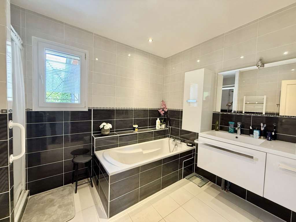 L’espace nuit se compose de trois chambres entre 11 et 13 m² avec placards intégrés, d’une salle de bains avec baignoire et douche, d’un WC séparé ainsi que d’un cellier.