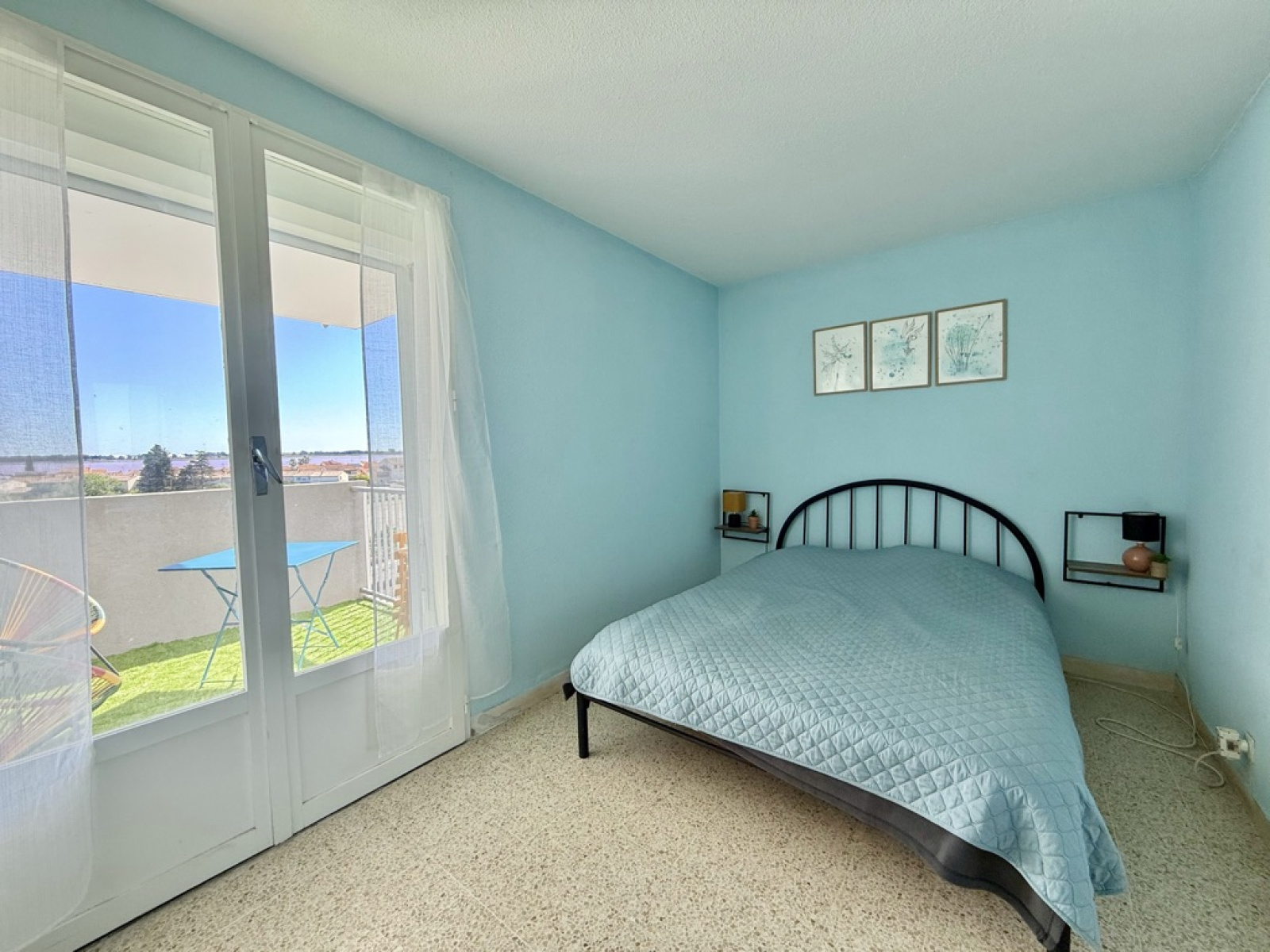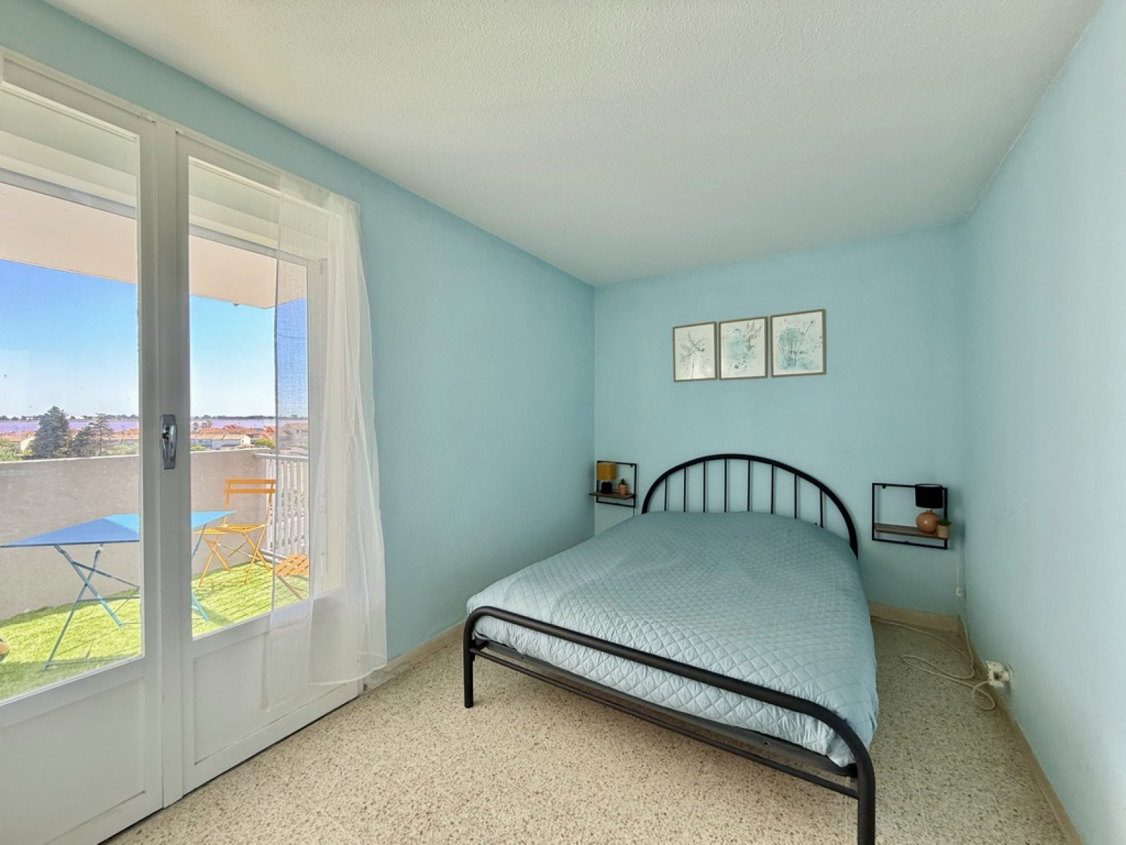 Il offre une agréable pièce de vie d'environ 13,5m² comprenant salon, salle à manger et cuisine ouverte, avec un placard de rangement et un accès direct à un balcon d'environ 6,25m² où vous pourrez profiter d’une vue dégagée sur les étangs et les flamants roses.