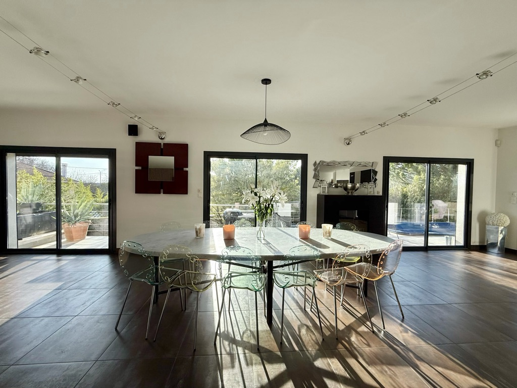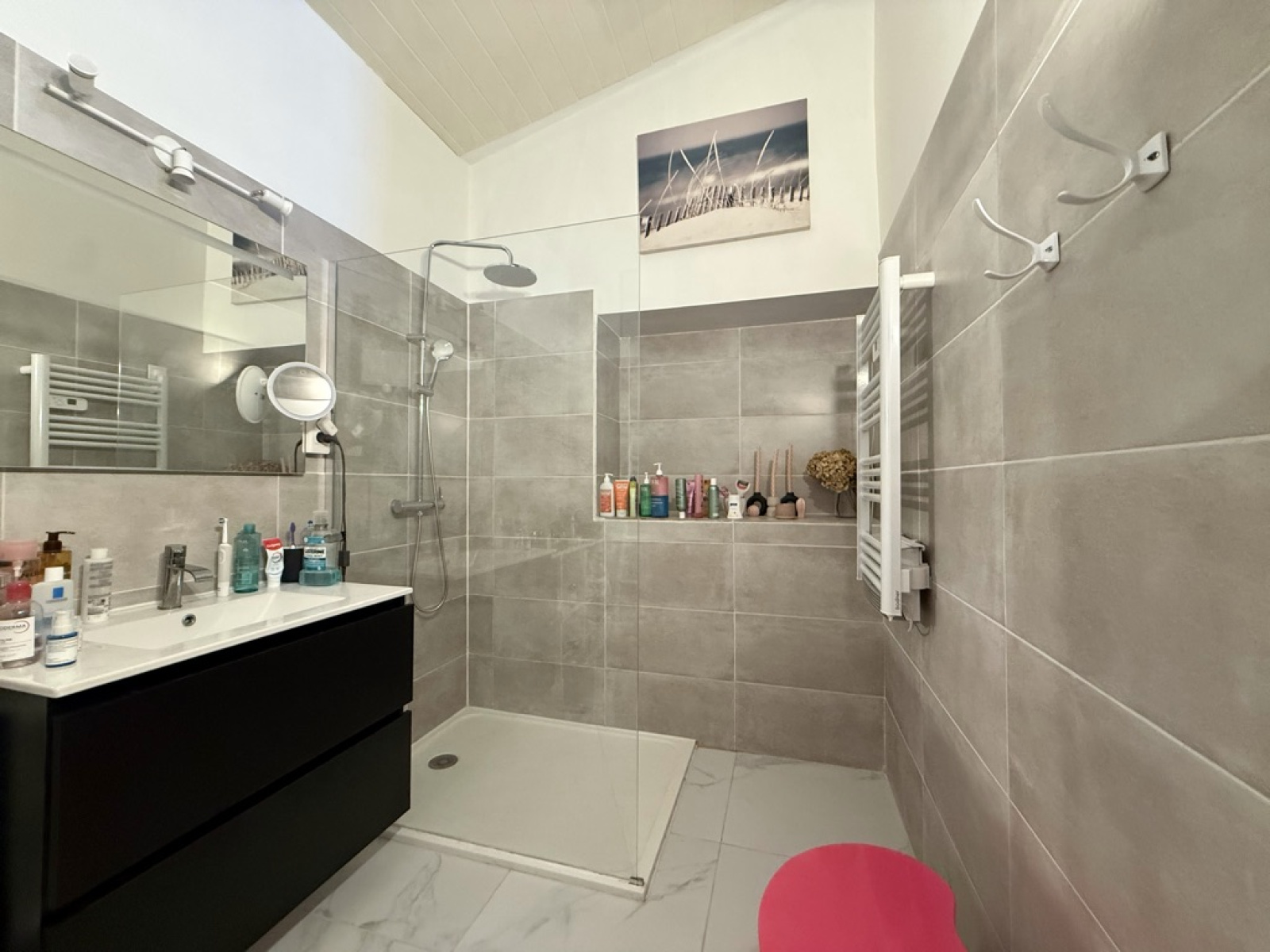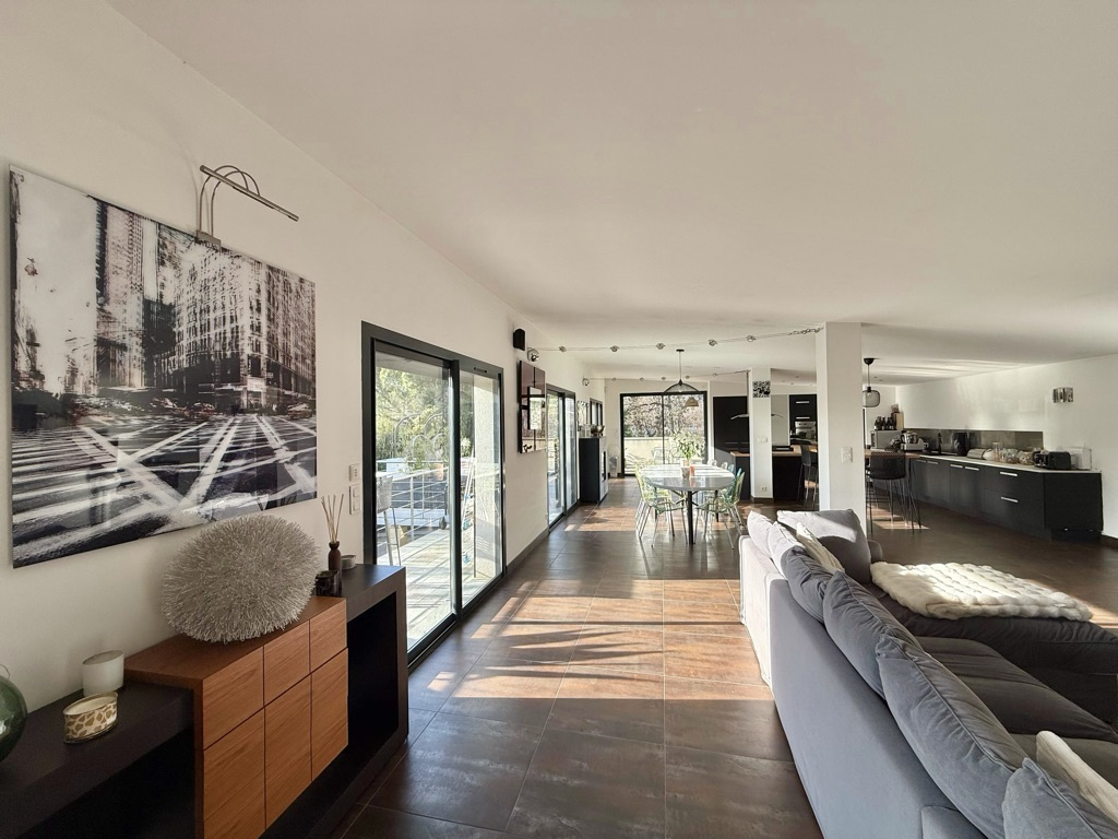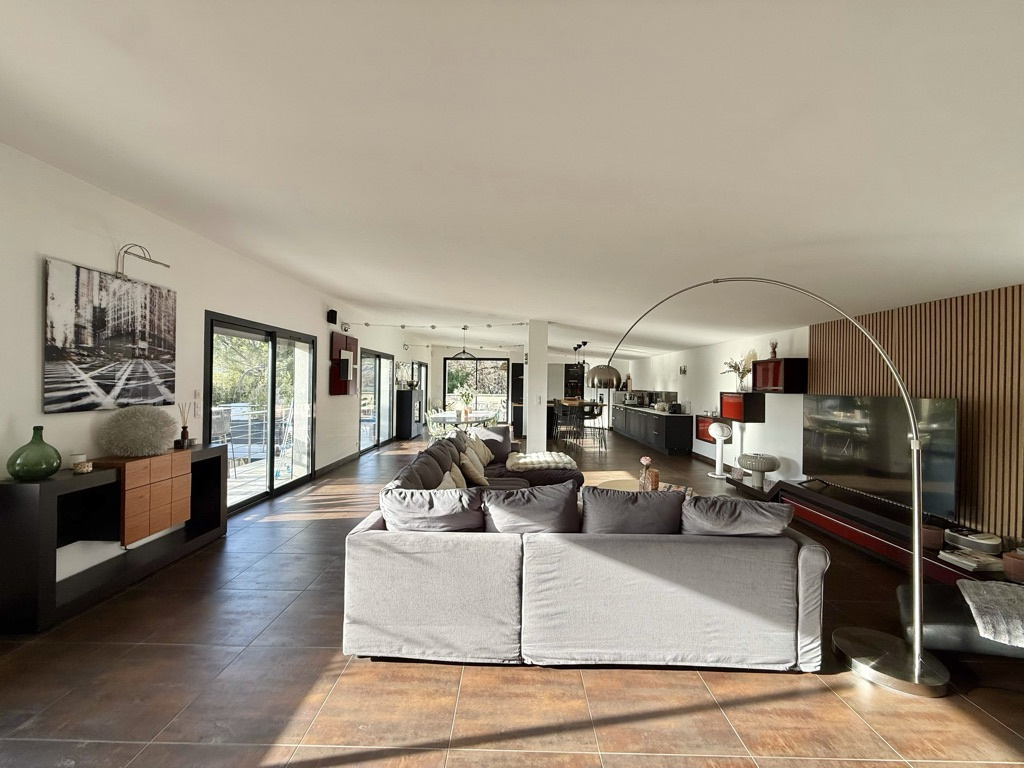 Cet espace se prolonge sur une grande terrasse d’environ 90 m², véritable atout du loft, intégrant une piscine coque.