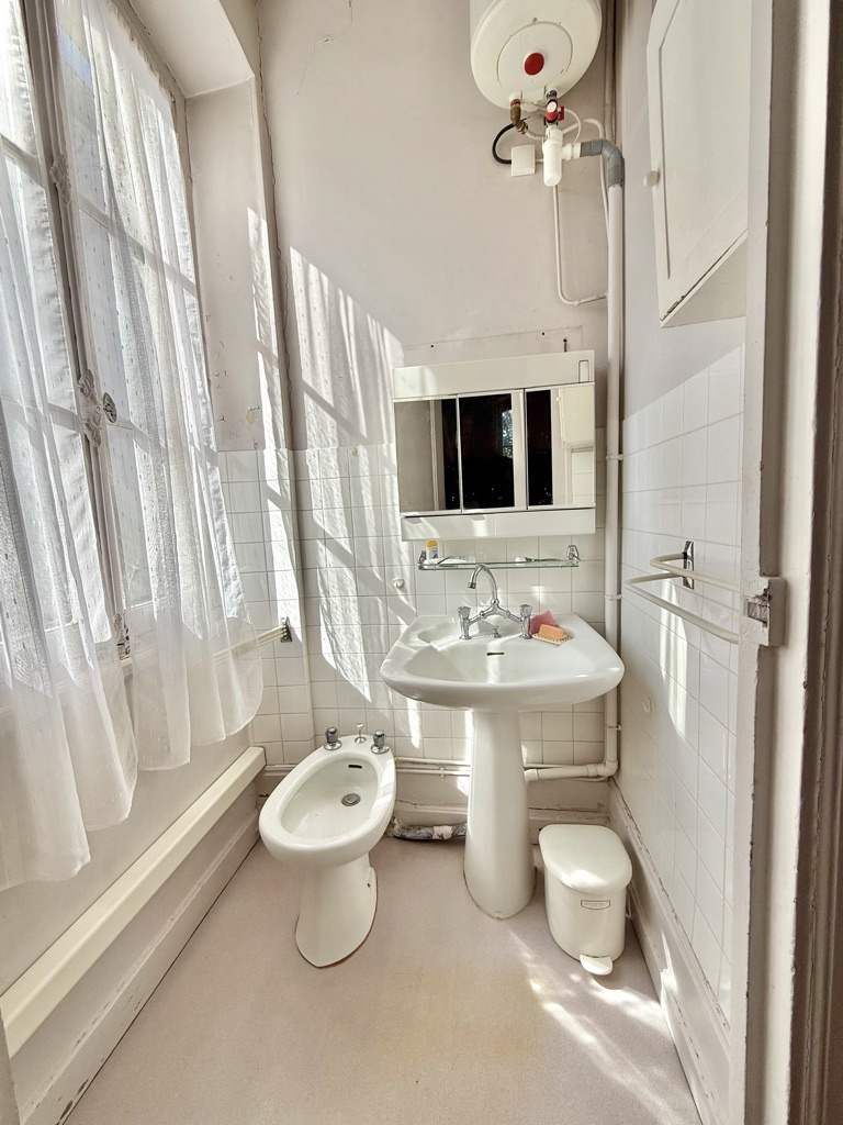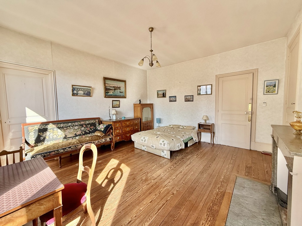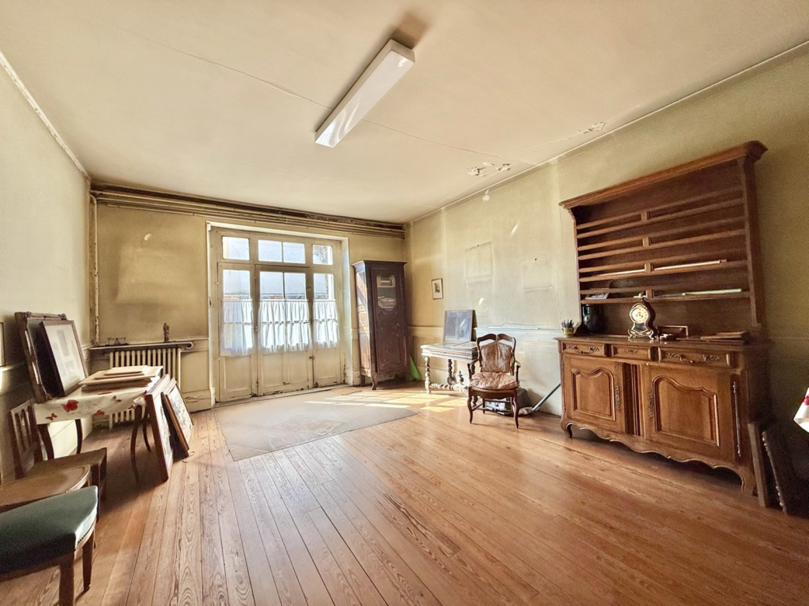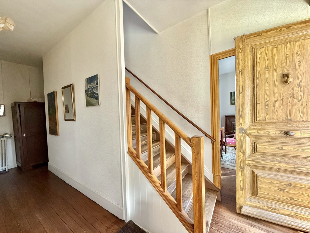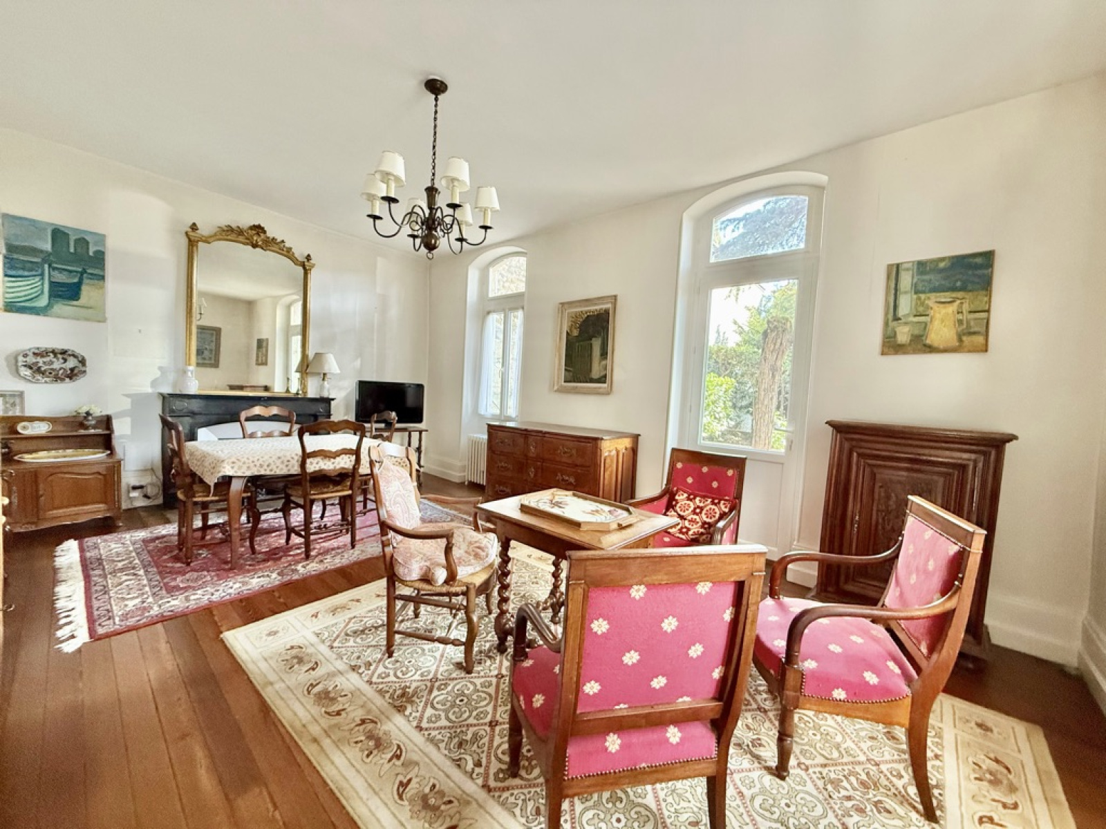 Dès l’entrée, le charme de l’ancien opère avec de beaux parquets et des volumes généreux. Le rez-de-chaussée se compose de deux salons spacieux de 24,81 m² et 27,74 m², d’une cuisine de 17,45 m² avec son arrière-cuisine de 3,58 m².