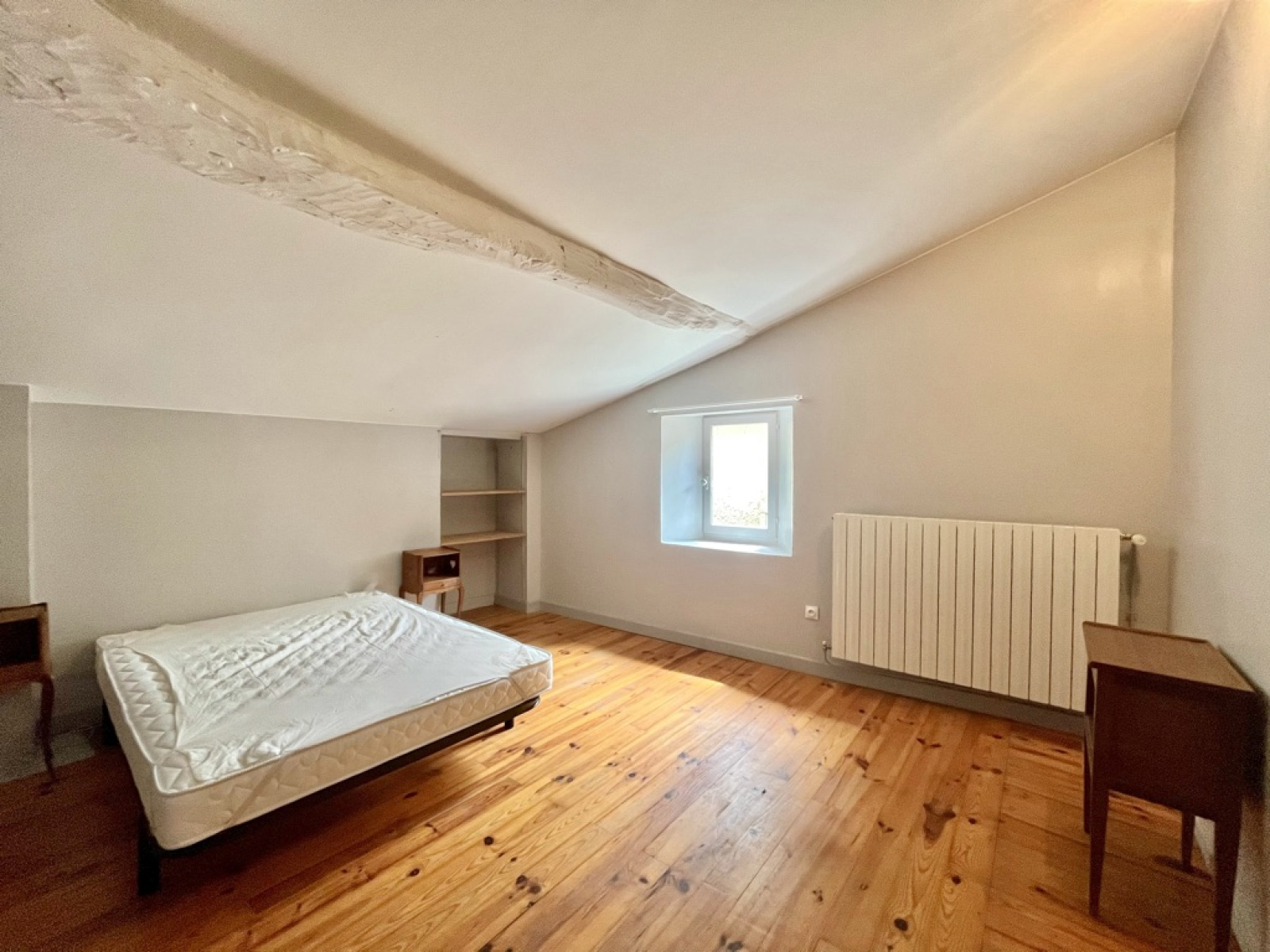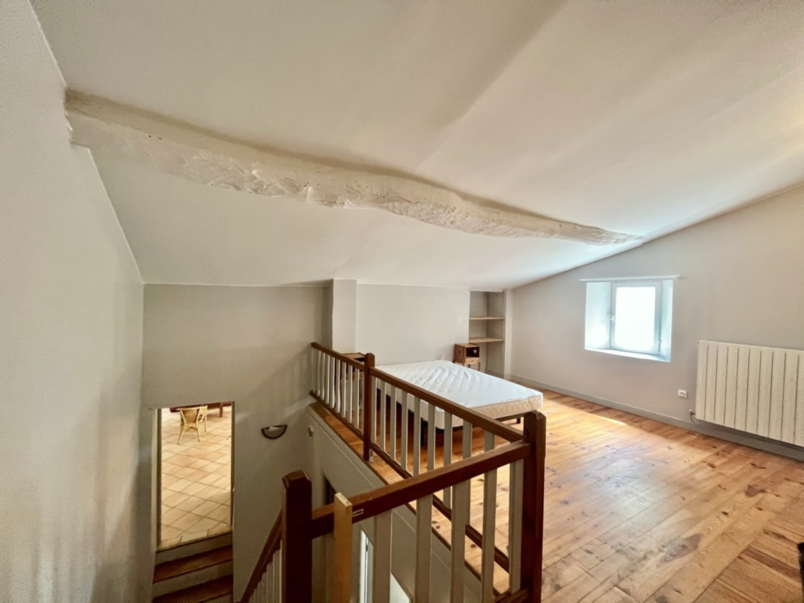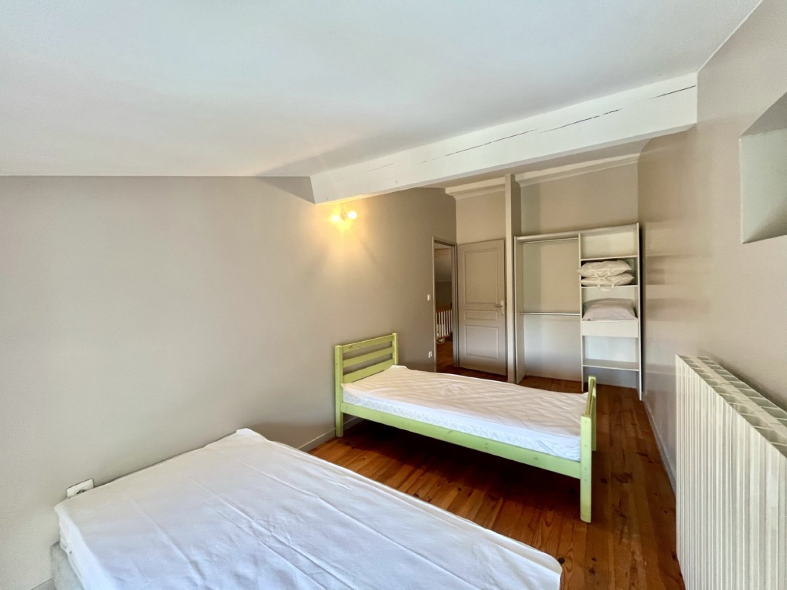 Également, vous trouverez un espace nuit avec trois chambres avec placard dont une ouverte (possibilité de fermer), une salle de bain et un WC.