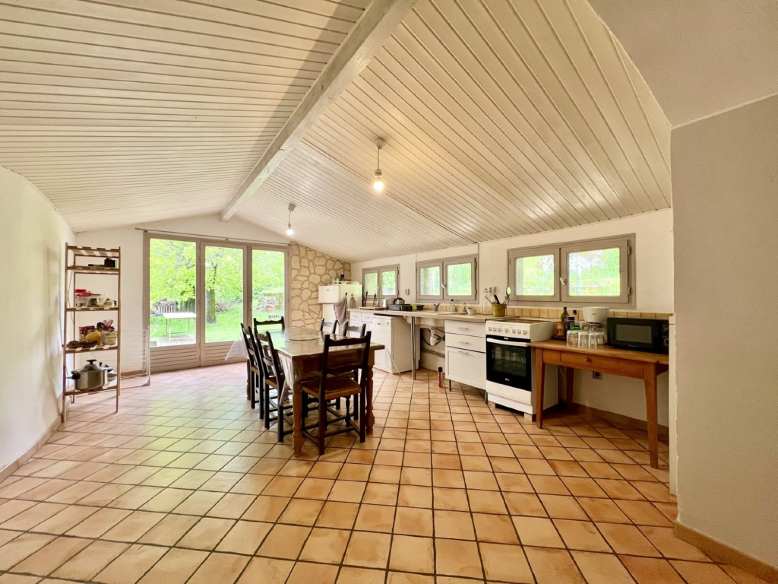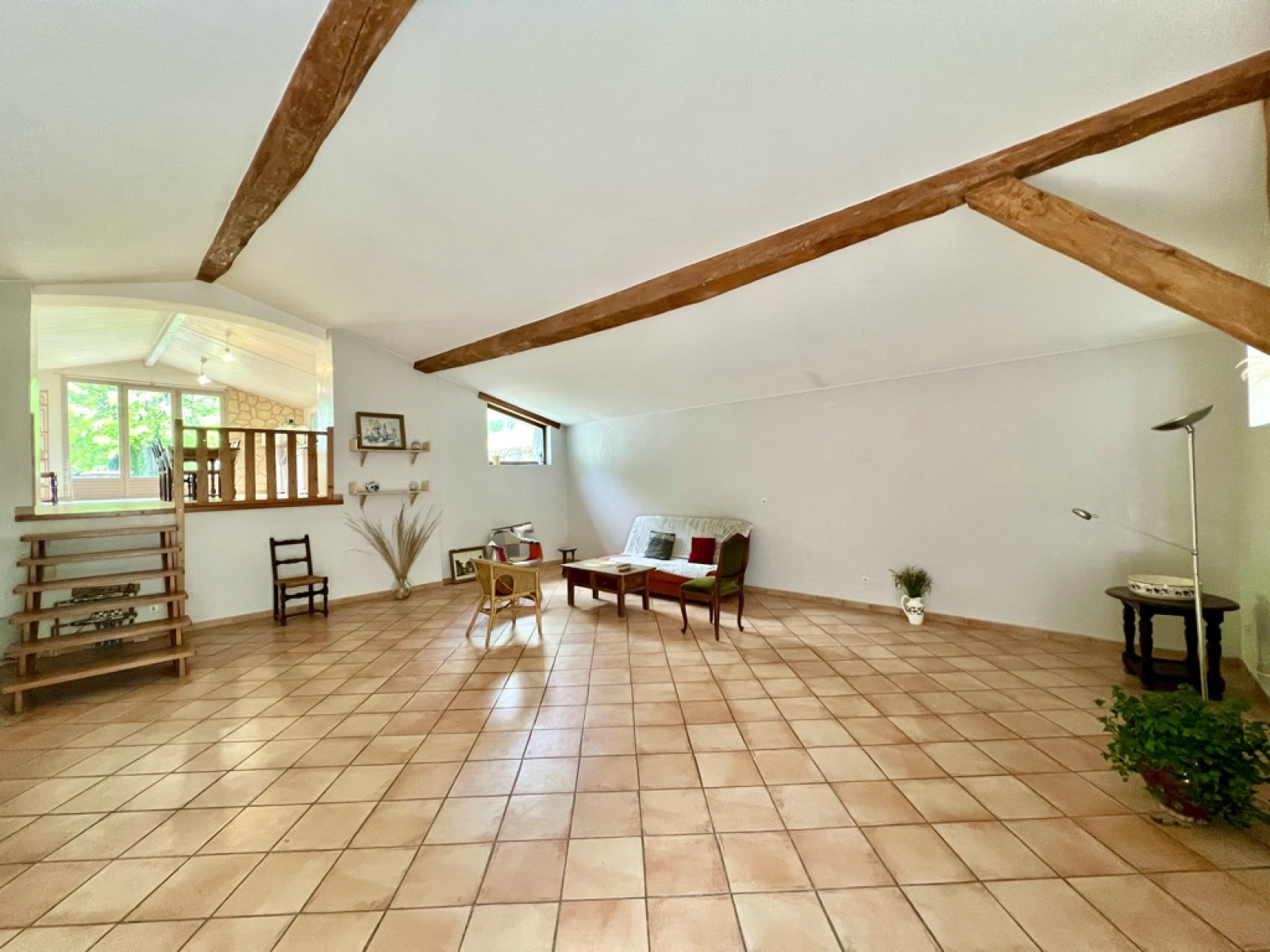 À l'étage supérieur, vous découvrirez un salon/séjour spacieux d'environ 48m² avec une grande cuisine en demi-niveau en communication directe avec la terrasse et le jardin.