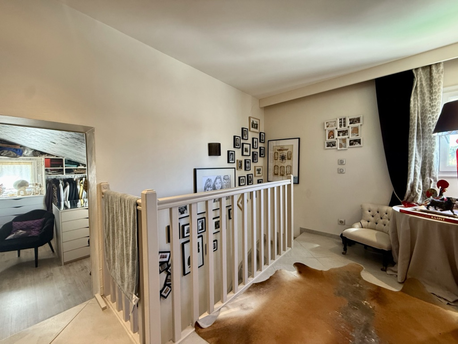 À l’étage, vous découvrirez un espace parental complet comprenant une grande chambre, un dressing aménagé, ainsi qu’une salle d’eau avec douche à l’italienne et un WC indépendant.